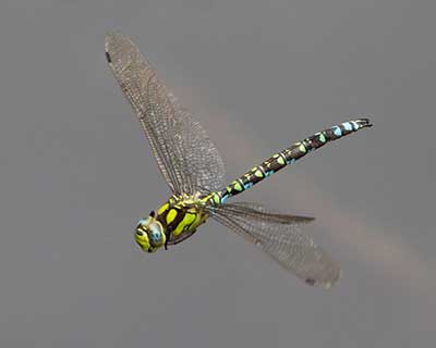 Accidental. A single observation, by me, on August 19, 2023 near the shelter Viben at the southern end of Pinseskoven. I was still on my bike, but standing still, when it came flying by and circled a few times. The dark slender body with clearly green eyes and marked pale spots along the abdomen showed clearly.